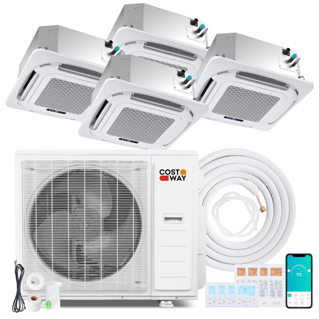 ● Wide Use & Exceptional Versatility: This 4-zone split ceiling cassette ac is ideal for homes, offices, meeting rooms and light commercial spaces such as restaurants, retail stores, etc. Besides, the outdoor unit is compatible with various types of indoor units, including ductless wall mounted ac, ductless ceiling cassette and concealed ducted ac. Note: Professional installation is required.